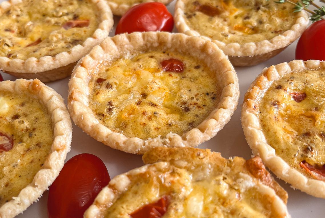 Heat oven to 375°F. Divide shredded cheese and veggies evenly among tart shells. Beat eggs, milk and seasonings with fork until well blended. Pour mixture into crusts, filling to within 1/4 inch of top. Bake for 25-30 minutes or until filling is set and golden brown.