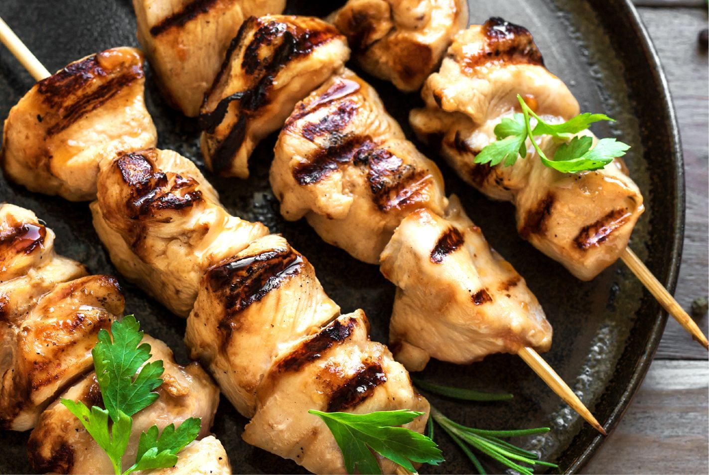 GRILLED HICKORY MAPLE GARLIC CHICKEN SKEWERS