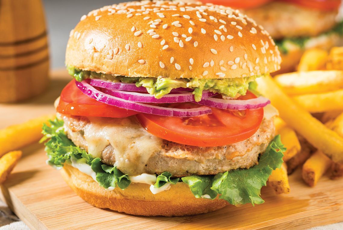 In medium bowl, combine the first 6 ingredients, add ground turkey and mix well. Form into 8 patties. Prepare grill to medium heat. Place patties on grill. Grill, turning once, until internal temperature reaches 165°F on an instant-read food thermometer, about 8-10 minutes. Brush with your favourite Sunset Grilling Sauce in the last five minutes of cooking (can be cooked stove top as well).