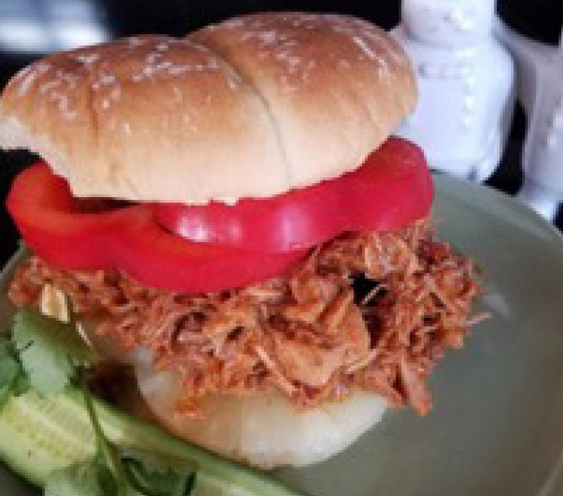 Rub pork roast with Oh! So Garlic and Sunset Seasoned Salt, then place in slow cooker. Top roast with 1 cup apple sauce, 1 cup Peaches, Pineapple & Peppers Grilling Sauce (reserve the 2 remaining cups for later) and 1 cup Sunset Gourmet’s Smoky Sweet Grilling Sauce. Cover and cook on low for 8-10 hours or until cooked thoroughly.