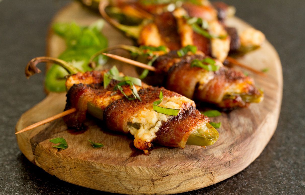 Soak toothpicks in water for ½ hour to prevent burning. Cut each slice of partially cooked bacon in half; set aside. Combine Baked Jalapeno Popper Dip Mix, cream cheese and shredded cheddar cheese. Warm slightly in microwave. Spoon dip into pepper boat. Wrap 1 piece of bacon around each and secure with a toothpick. Place peppers on grill over medium-high heat. Cook for 6-8 minutes until bacon is crisp and peppers are just tender. You can also cook these under the broiler in the oven as well. Enjoy any leftover dip as a spread on crackers.