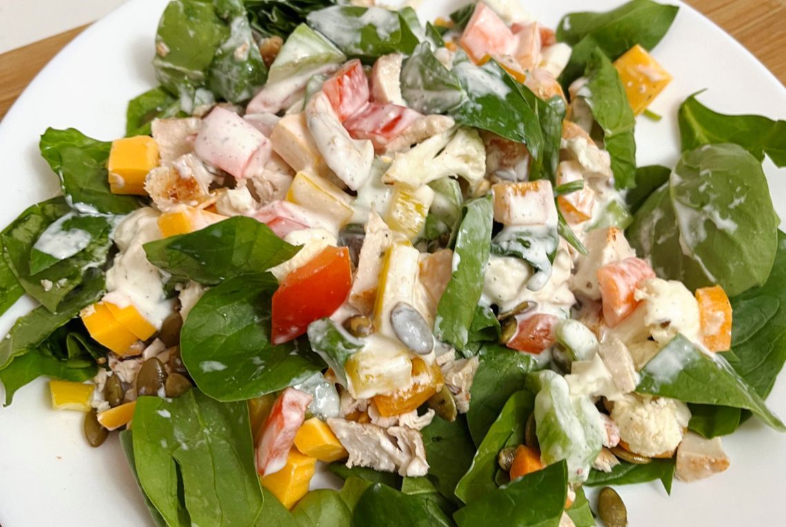 SPINACH, CHICKEN AND VEGGIE SALAD